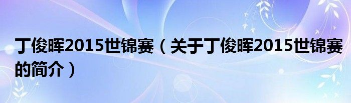 本文關于丁俊暉2015世錦賽的簡介就講解完畢,希望對大家有所幫助。