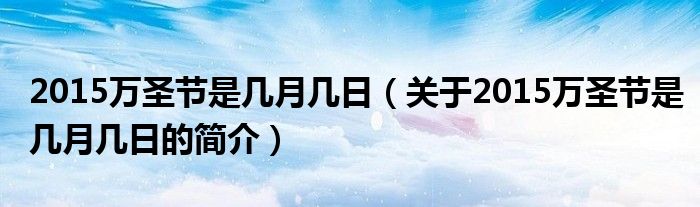 本文關于2015萬圣節是幾月幾日的簡介就講解完畢,希望對大家有所幫助。