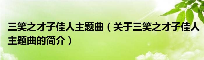 本文關于三笑之才子佳人主題曲的簡介就講解完畢,希望對大家有所幫助。