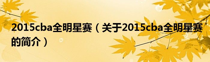 本文關于2015cba全明星賽的簡介就講解完畢,希望對大家有所幫助。
