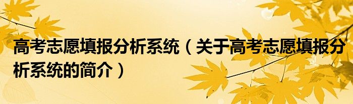 大家好,高考志愿填報分析系統(tǒng),關(guān)于高考志愿填報分析系統(tǒng)的簡介很多人還不知道,現(xiàn)在讓我們一起來看看吧!