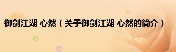 本文關于御劍江湖 心然的簡介就講解完畢,希望對大家有所幫助。