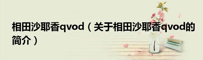 本文關于相田沙耶香qvod的簡介就講解完畢,希望對大家有所幫助。