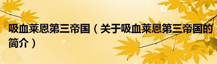 大家好,吸血萊恩第三帝國,關(guān)于吸血萊恩第三帝國的簡介很多人還不知道,現(xiàn)在讓我們一起來看看吧!
