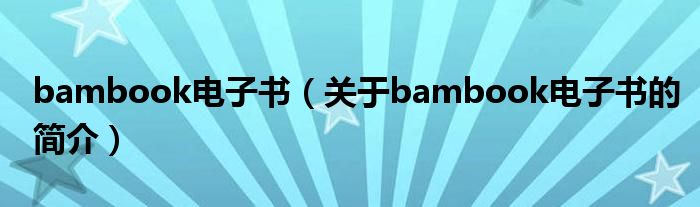 本文關于bambook電子書的簡介就講解完畢,希望對大家有所幫助。