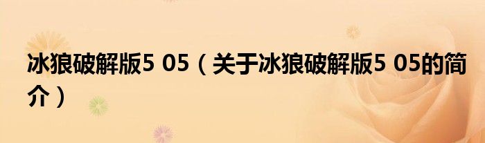 大家好,冰狼破解版5 05,關于冰狼破解版5 05的簡介很多人還不知道,現在讓我們一起來看看吧!