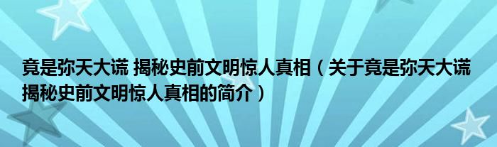 大家好,竟是彌天大謊 揭秘史前文明驚人真相,關于竟是彌天大謊 揭秘史前文明驚人真相的簡介很多人還不知道,現在讓我們一起來看看吧!