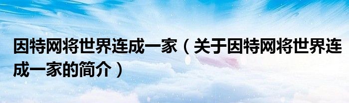 大家好,因特網將世界連成一家,關于因特網將世界連成一家的簡介很多人還不知道,現在讓我們一起來看看吧!