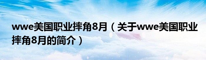 大家好,wwe美國職業摔角8月,關于wwe美國職業摔角8月的簡介很多人還不知道,現在讓我們一起來看看吧!
