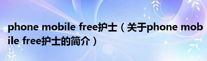 本文關于phone mobile free護士的簡介就講解完畢,希望對大家有所幫助。
