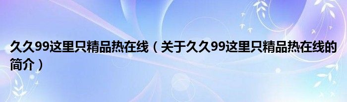 本文關(guān)于久久99這里只精品熱在線的簡介就講解完畢,希望對大家有所幫助。
