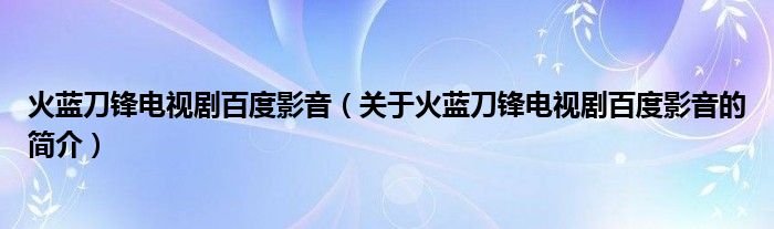 本文關于火藍刀鋒電視劇百度影音的簡介就講解完畢,希望對大家有所幫助。