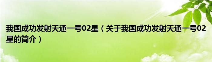 本文關(guān)于我國成功發(fā)射天通一號(hào)02星的簡介就講解完畢,希望對(duì)大家有所幫助。