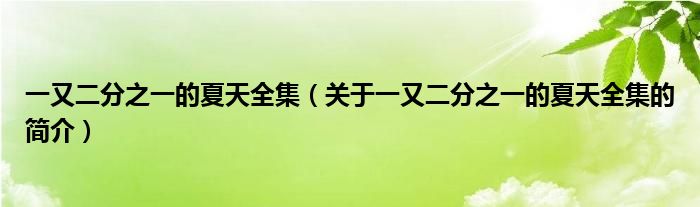 大家好,一又二分之一的夏天全集,關于一又二分之一的夏天全集的簡介很多人還不知道,現在讓我們一起來看看吧!