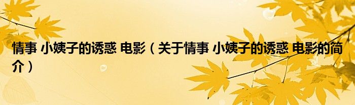 本文關于情事 小姨子的誘惑 電影的簡介就講解完畢,希望對大家有所幫助。