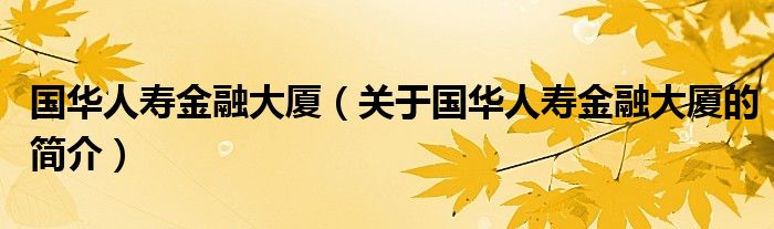 本文關于國華人壽金融大廈的簡介就講解完畢,希望對大家有所幫助。