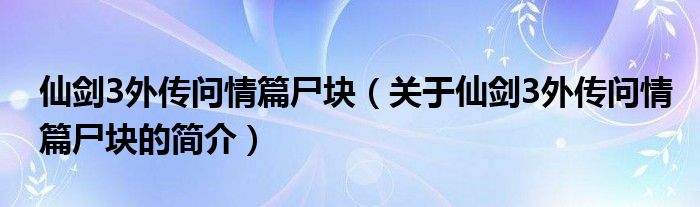 大家好,仙劍3外傳問情篇尸塊,關(guān)于仙劍3外傳問情篇尸塊的簡介很多人還不知道,現(xiàn)在讓我們一起來看看吧!