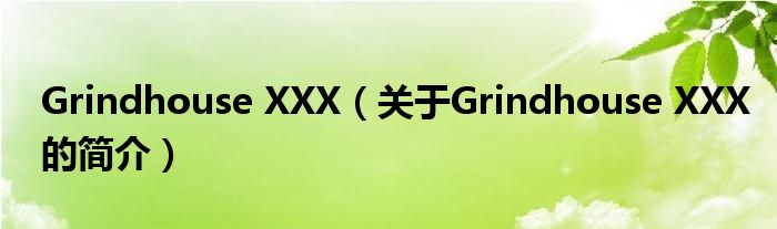 本文關于Grindhouse XXX的簡介就講解完畢,希望對大家有所幫助。