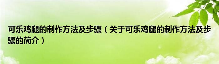 本文關于可樂雞腿的制作方法及步驟的簡介就講解完畢,希望對大家有所幫助。