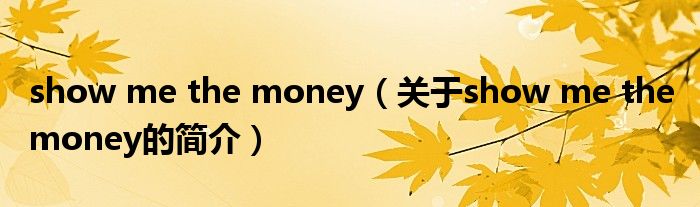 本文關于show me the money的簡介就講解完畢,希望對大家有所幫助。