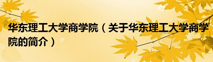 華東理工大學商學院(關于華東理工大學商學院的簡介)