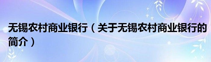 本文關于無錫農村商業銀行的簡介就講解完畢,希望對大家有所幫助。