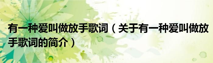 本文關于有一種愛叫做放手歌詞的簡介就講解完畢,希望對大家有所幫助。