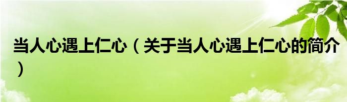 大家好,當(dāng)人心遇上仁心,關(guān)于當(dāng)人心遇上仁心的簡(jiǎn)介很多人還不知道,現(xiàn)在讓我們一起來(lái)看看吧!