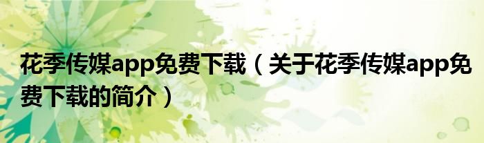 本文關于花季傳媒app免費下載的簡介就講解完畢,希望對大家有所幫助。