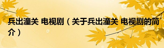 本文關(guān)于兵出潼關(guān) 電視劇的簡介就講解完畢,希望對大家有所幫助。