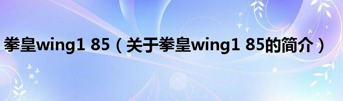 本文關于拳皇wing1 85的簡介就講解完畢,希望對大家有所幫助。