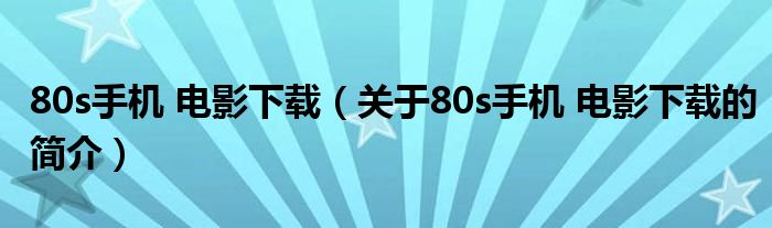 本文關(guān)于80s手機(jī) 電影下載的簡介就講解完畢,希望對大家有所幫助。
