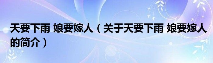 本文關(guān)于天要下雨 娘要嫁人的簡(jiǎn)介就講解完畢,希望對(duì)大家有所幫助。