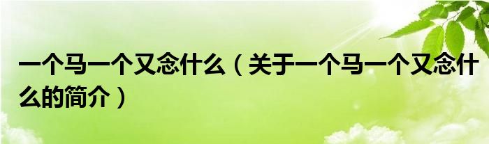 大家好,一個馬一個又念什么,關(guān)于一個馬一個又念什么的簡介很多人還不知道,現(xiàn)在讓我們一起來看看吧!