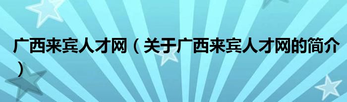 本文關于廣西來賓人才網的簡介就講解完畢,希望對大家有所幫助。