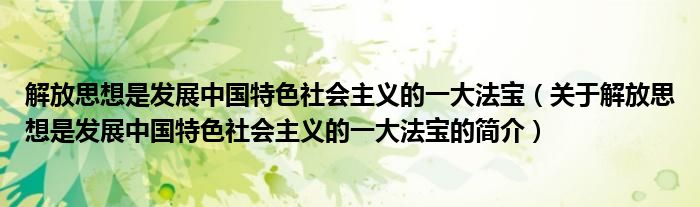 本文關于解放思想是發展中國特色社會主義的一大法寶的簡介就講解完畢,希望對大家有所幫助。