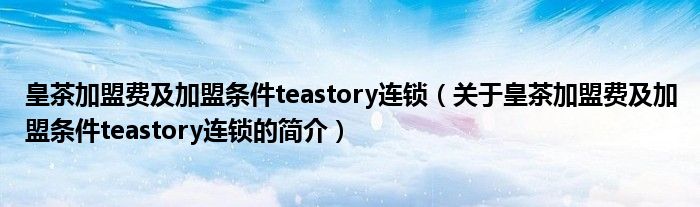 本文關于皇茶加盟費及加盟條件teastory連鎖的簡介就講解完畢,希望對大家有所幫助。