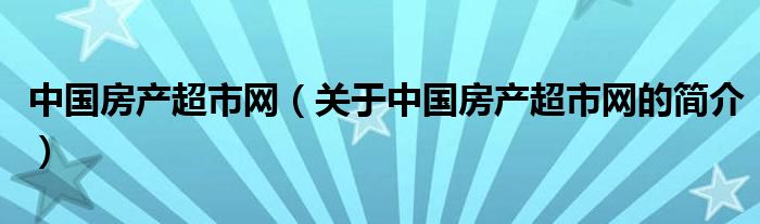 本文關于中國房產超市網的簡介就講解完畢,希望對大家有所幫助。