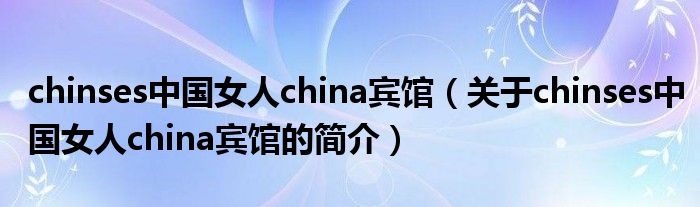 本文關于chinses中國女人china賓館的簡介就講解完畢,希望對大家有所幫助。