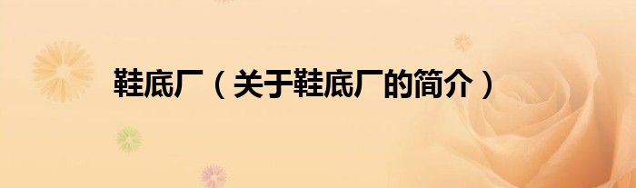 本文關于鞋底廠的簡介就講解完畢,希望對大家有所幫助。