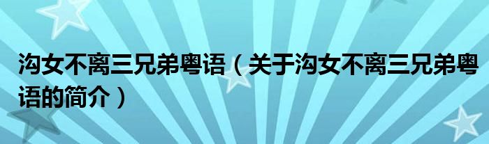 本文關于溝女不離三兄弟粵語的簡介就講解完畢,希望對大家有所幫助。