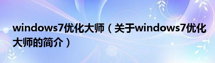 大家好,windows7優(yōu)化大師,關于windows7優(yōu)化大師的簡介很多人還不知道,現(xiàn)在讓我們一起來看看吧!