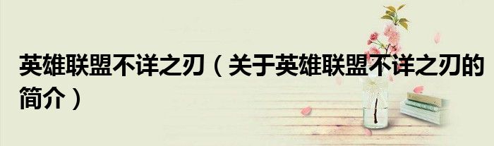 大家好,英雄聯盟不詳之刃,關于英雄聯盟不詳之刃的簡介很多人還不知道,現在讓我們一起來看看吧!