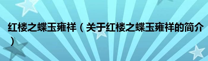 本文關(guān)于紅樓之蝶玉雍祥的簡介就講解完畢,希望對大家有所幫助。
