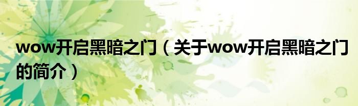 本文關于wow開啟黑暗之門的簡介就講解完畢,希望對大家有所幫助。