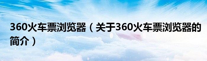 本文關于360火車票瀏覽器的簡介就講解完畢,希望對大家有所幫助。