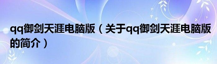 本文關于qq御劍天涯電腦版的簡介就講解完畢,希望對大家有所幫助。