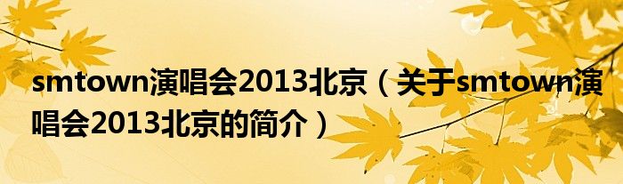 本文關于smtown演唱會2013北京的簡介就講解完畢,希望對大家有所幫助。