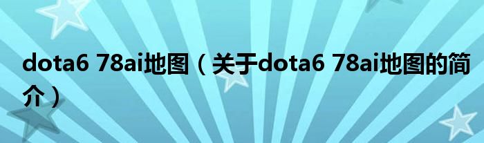 本文關于dota6 78ai地圖的簡介就講解完畢,希望對大家有所幫助。