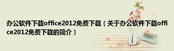 本文關于辦公軟件下載office2012免費下載的簡介就講解完畢,希望對大家有所幫助。